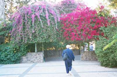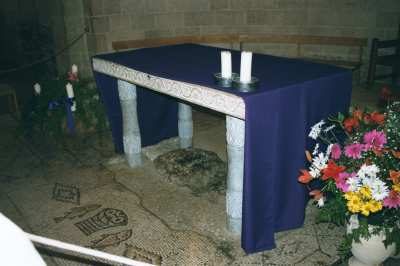 A new church has been built to the same specifications as the one built here in 450 AD. It was built in such a way that the altar was above the "Mensa Christi", the rock from which Jesus fed the crowds. The mosaic of the fishes and the loaves is one of the most famous in the world and is over fifteen hundred years old. I must include a comment about the truly beautiful Bougainvillea plants that were blooming at this site and many other areas in Galilee.