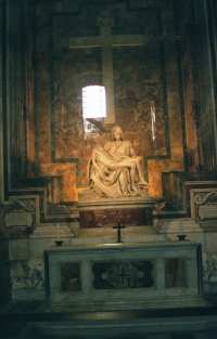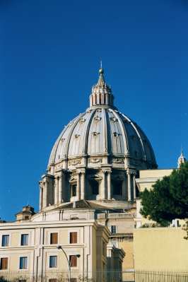 The Sistine Chapel is the Pope's private chapel. It is also the place where the Cardinals gather after the death of a pope to select the next pope. The ceiling was painted by Michelangelo under contract by Pope Julius II in 1508 and was completed on November 1, 1512. It tells the entire story of Genesis and focuses on the Creation of Adam in its center. The front wall of the chapel features Michelangelo's - Last Judgment.   Christ ordered Peter to guide the Church throughout history. As a result, Peter came to Rome in about 42 A.D. Then sometime between 64-67 A.D., at the height of of the anti-Christian persecutions, Saint Peter was martyred (crucified upside down) in Nero's Circus at the foot of Vatican Hill. His body was entombed in a nearby burial ground. Peter's tomb is the reason for all that exists in the Vatican to this day.